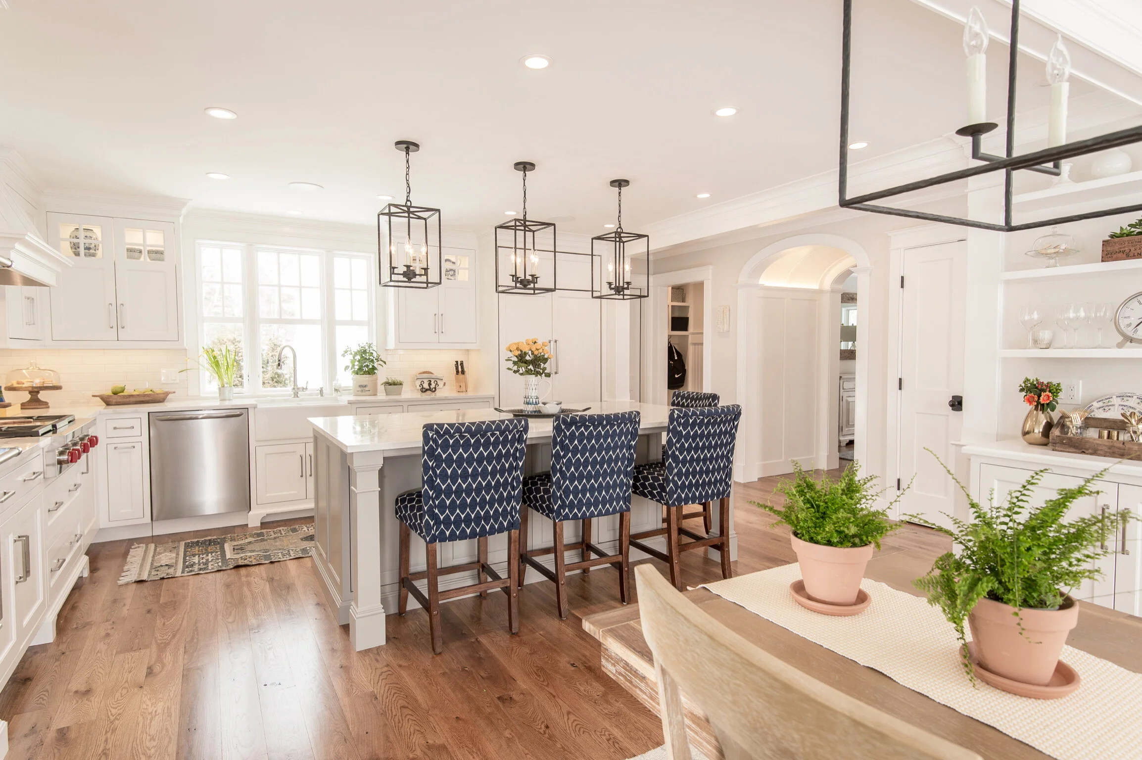 Opening up this originally small and closed off kitchen resulted in a space where the owners can entertain during daily mealtimes and host their large family holiday gatherings.