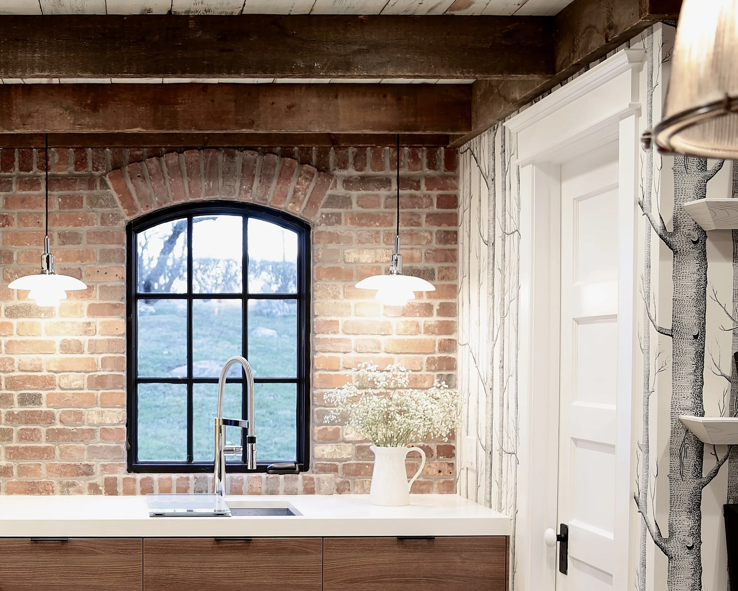 Incorporating Elements of Scandinavian Design this kitchen has and abundance of light, warmth of wood & nature, white with pops of color and is both simple yet multi-functional.